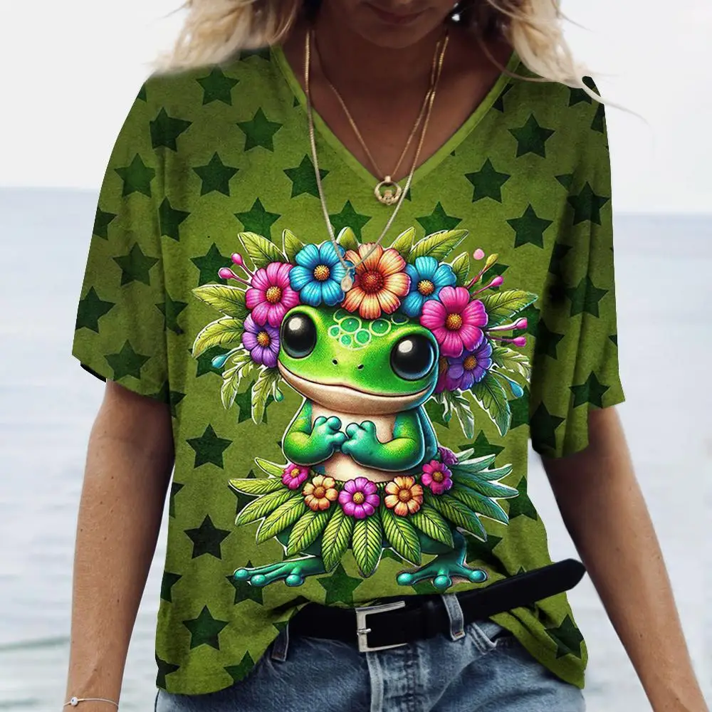 The Women’s Retro Casual Frog Tee is a playful and stylish piece that brings together comfort and personality. Featuring a charming frog and floral print, this oversized t-shirt adds a touch of fun and whimsy to your summer wardrobe. Designed with Y2K retro vibes, it’s perfect for women who love blending casual fashion with unique statement prints.