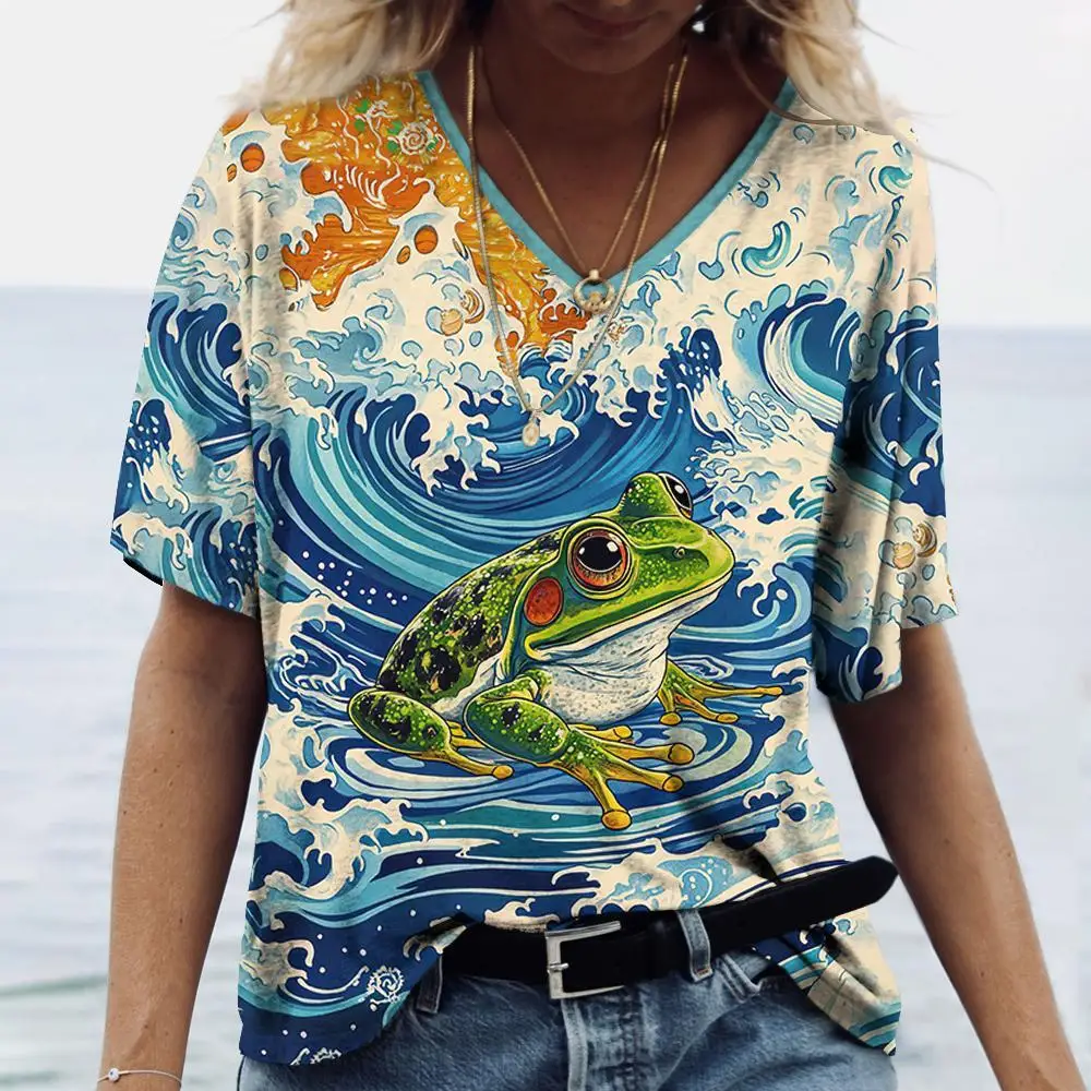 With its eye-catching design and versatile style, this frog print t-shirt is more than just casual wear—it’s a fashion expression that makes you stand out while keeping cool and comfortable all season long.