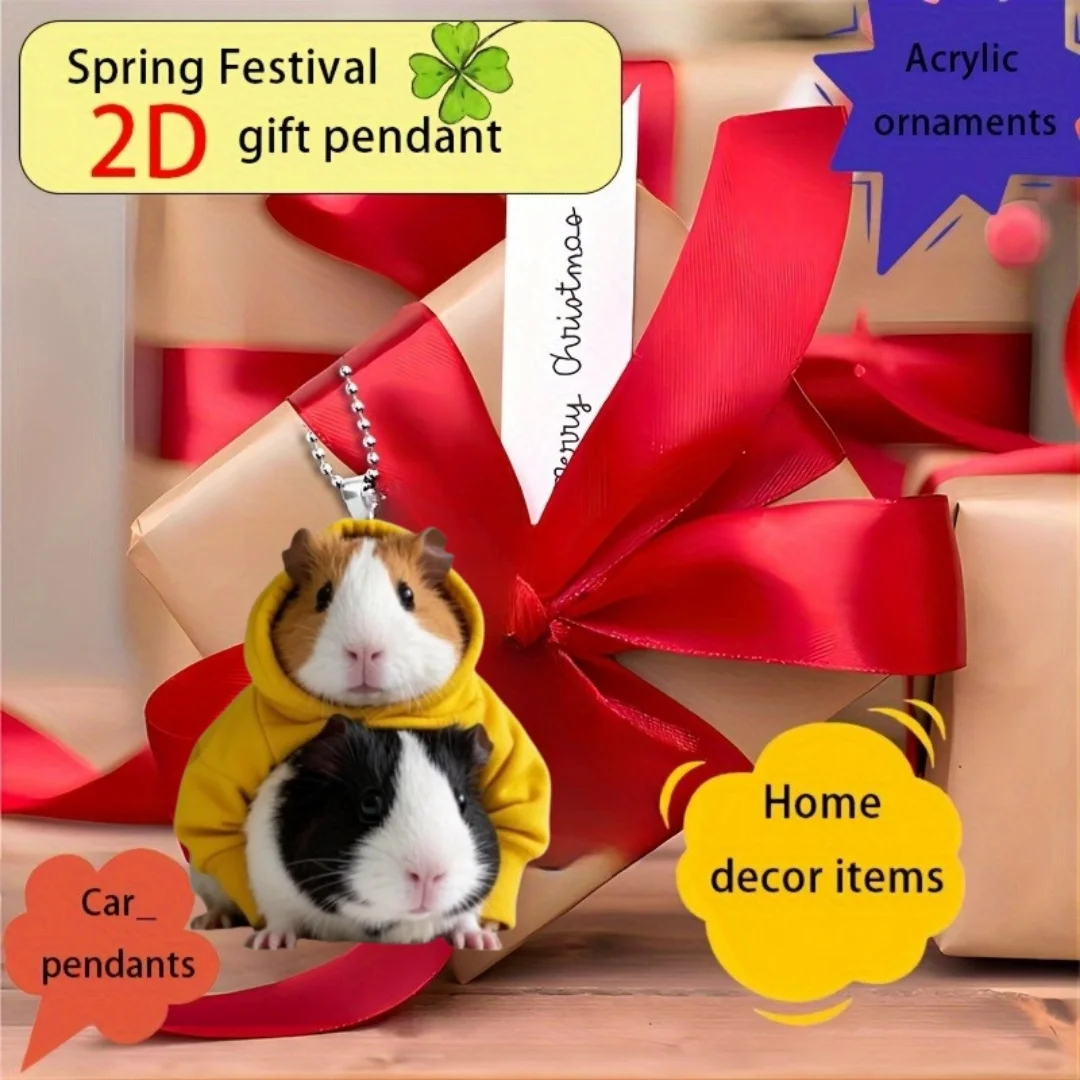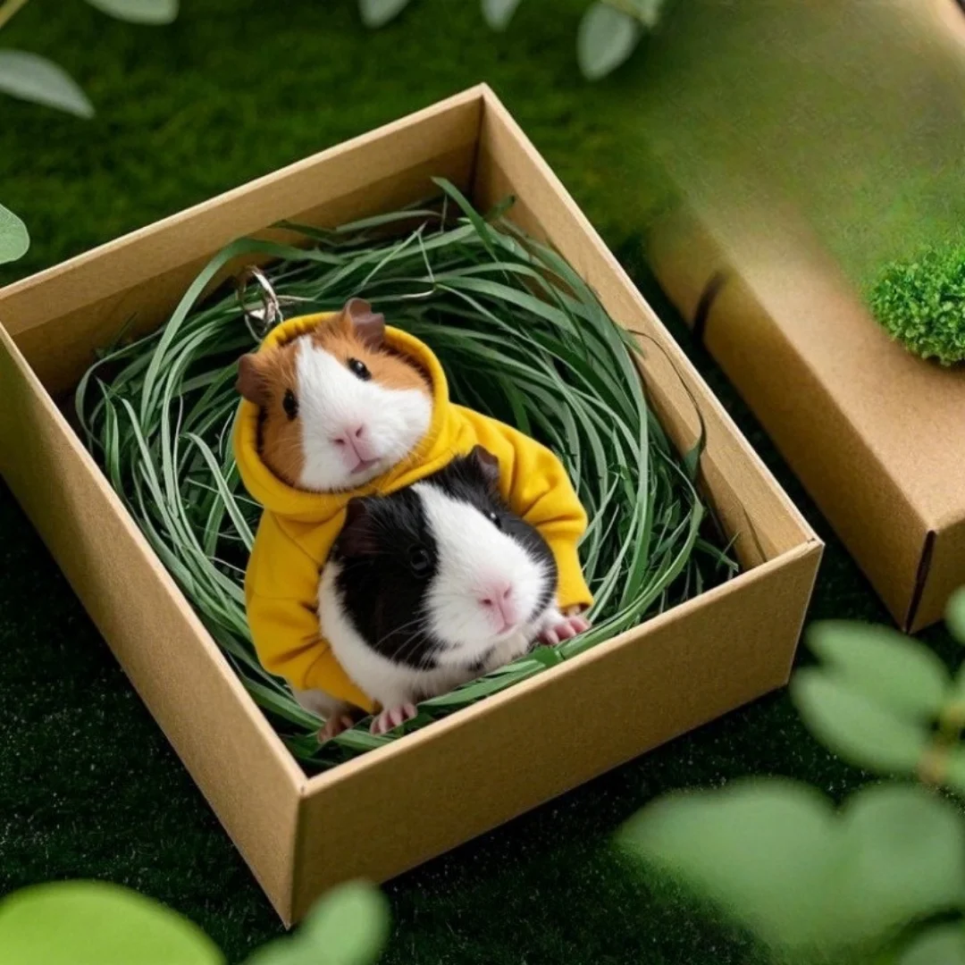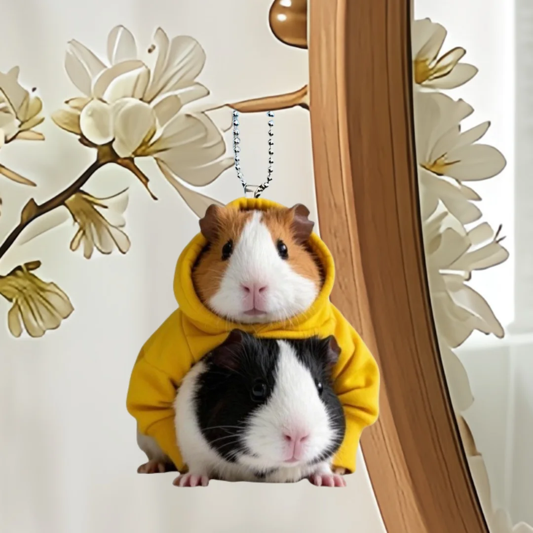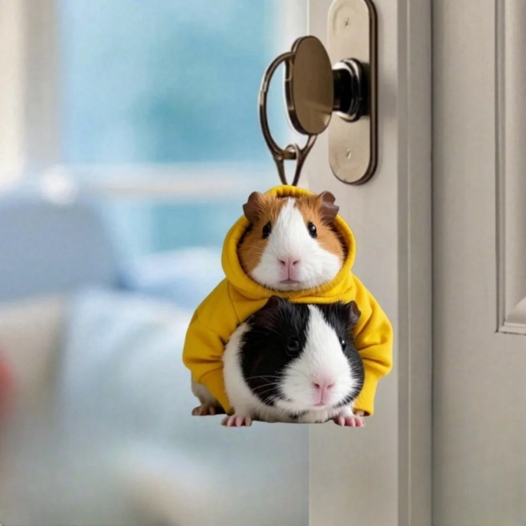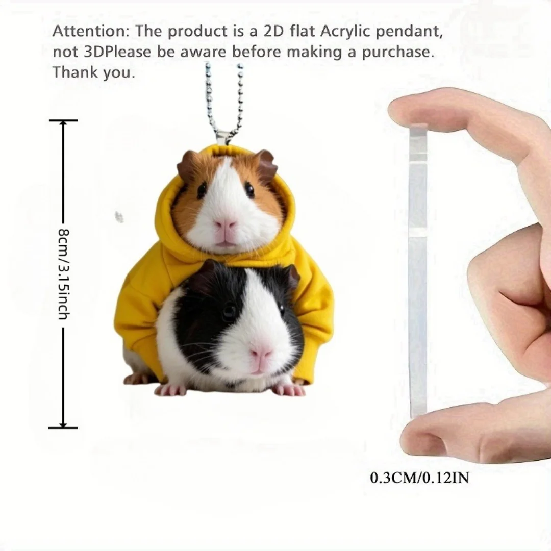 Guinea Pig Hoodie Keychain – Cute 2D Acrylic Ornament for Bags & Cars