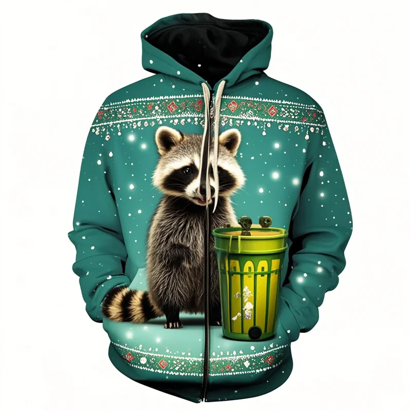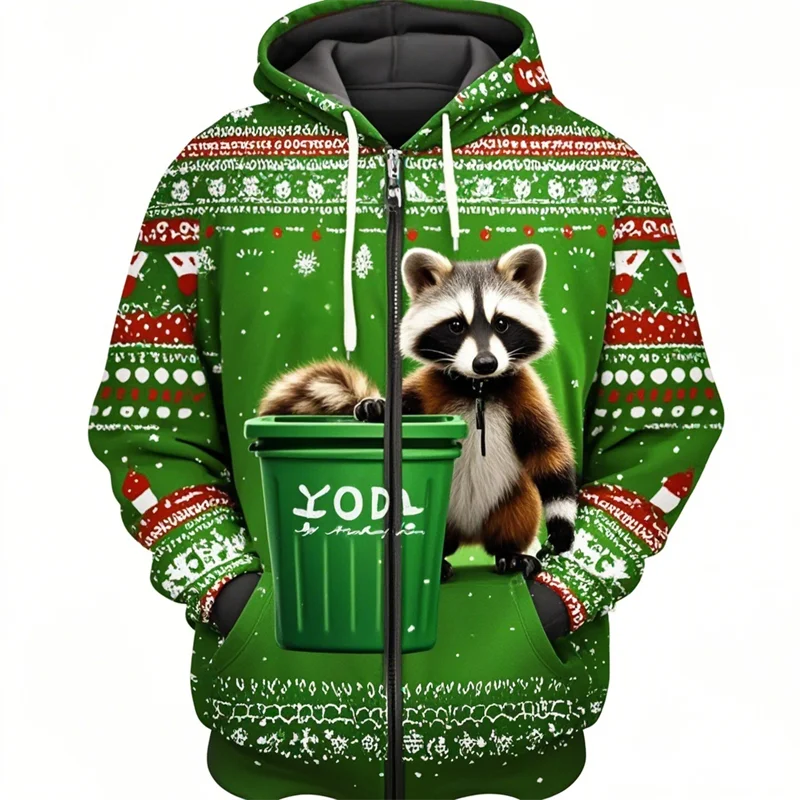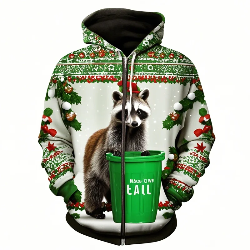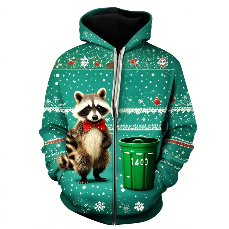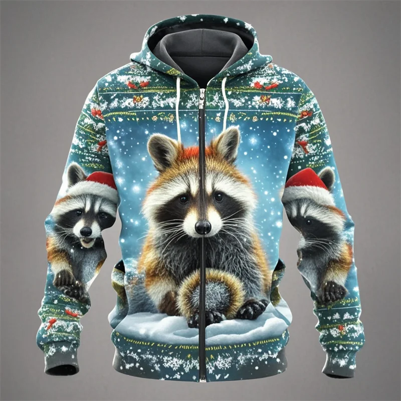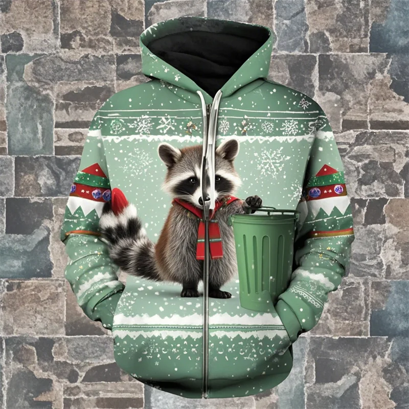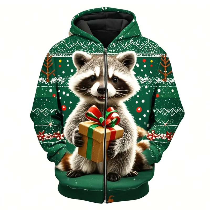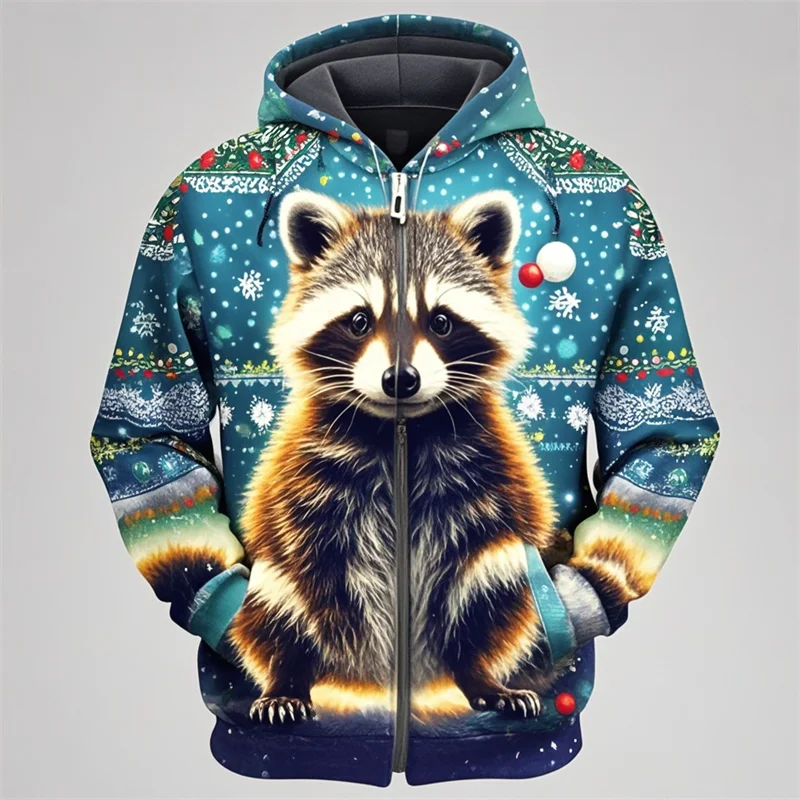 Raccoon Print Christmas Hoodie