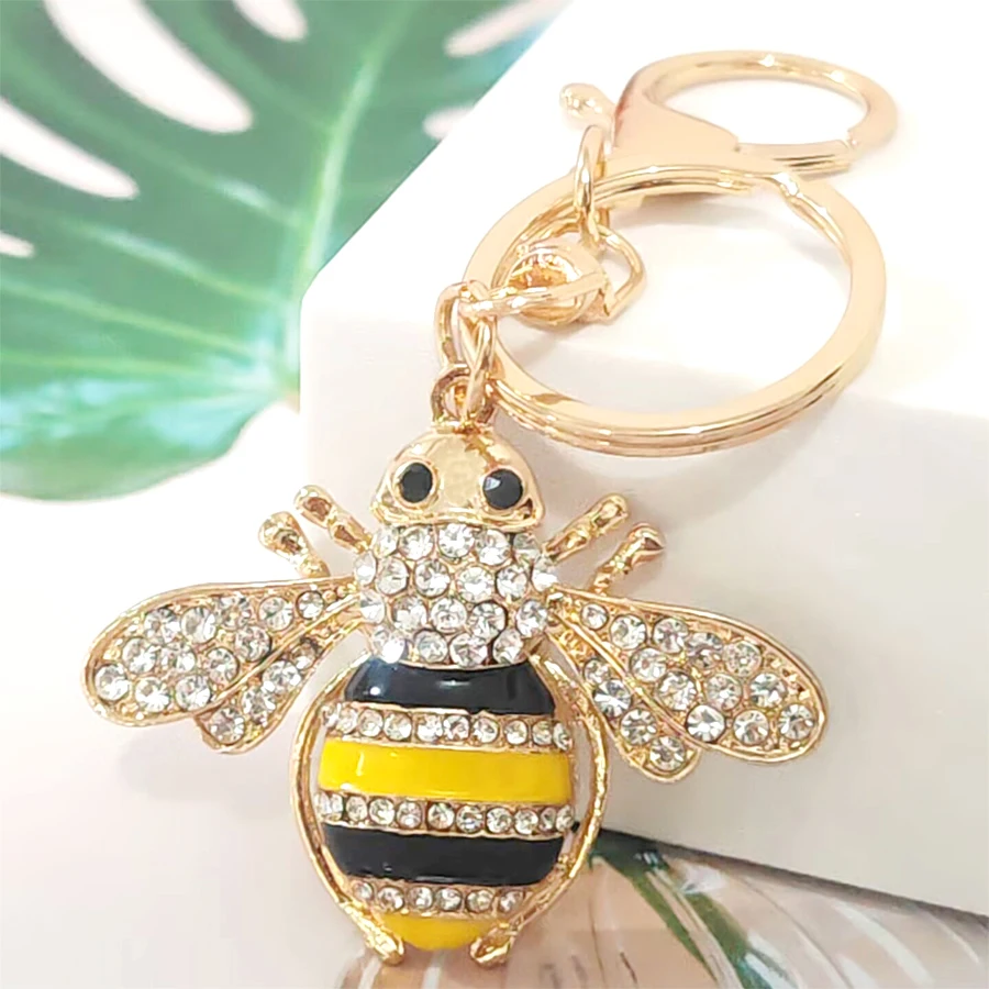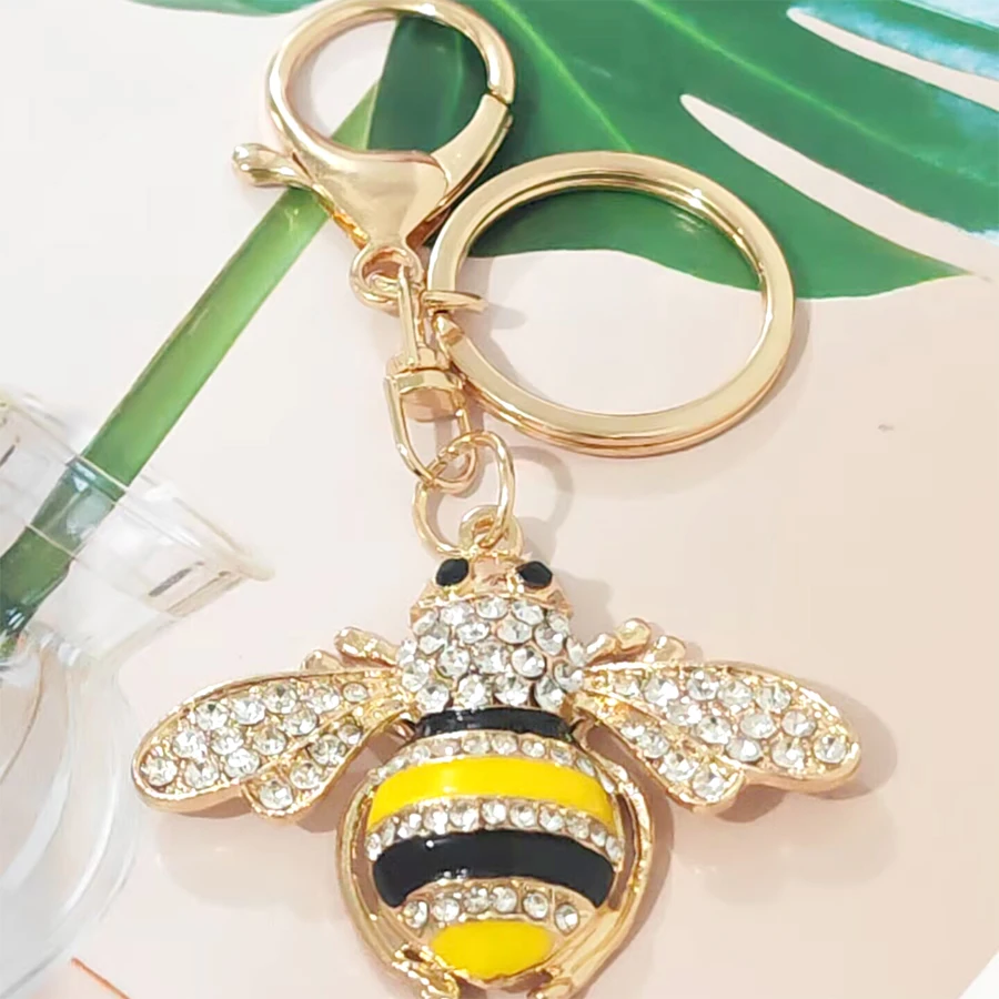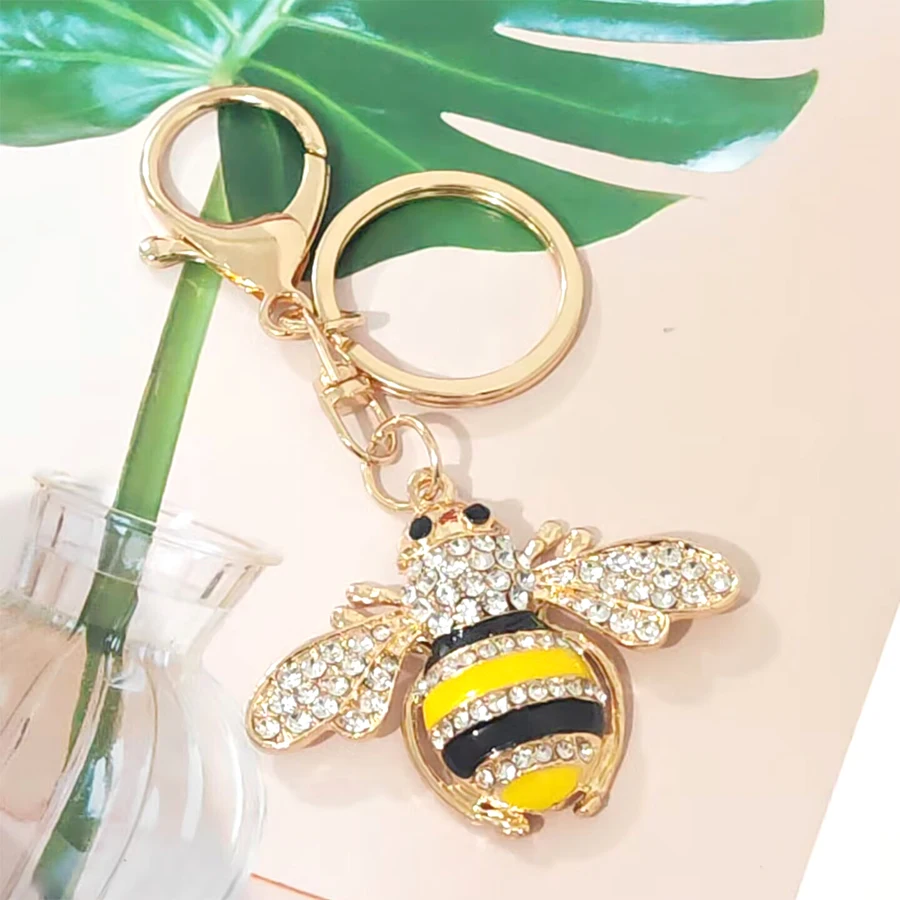 1pc summer women's teens girls female shiny metal big enamel bee keychain cute classic fashion animal car keychain bag backbag pendant charm best friend sister/daughter/mom birthday gift